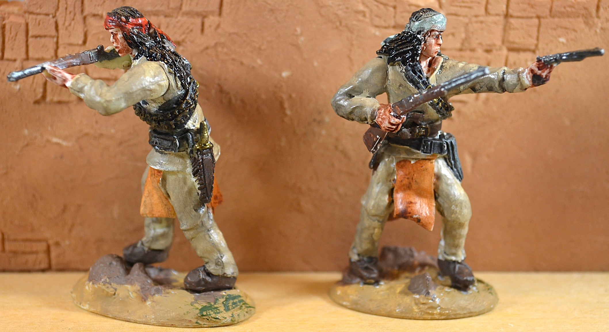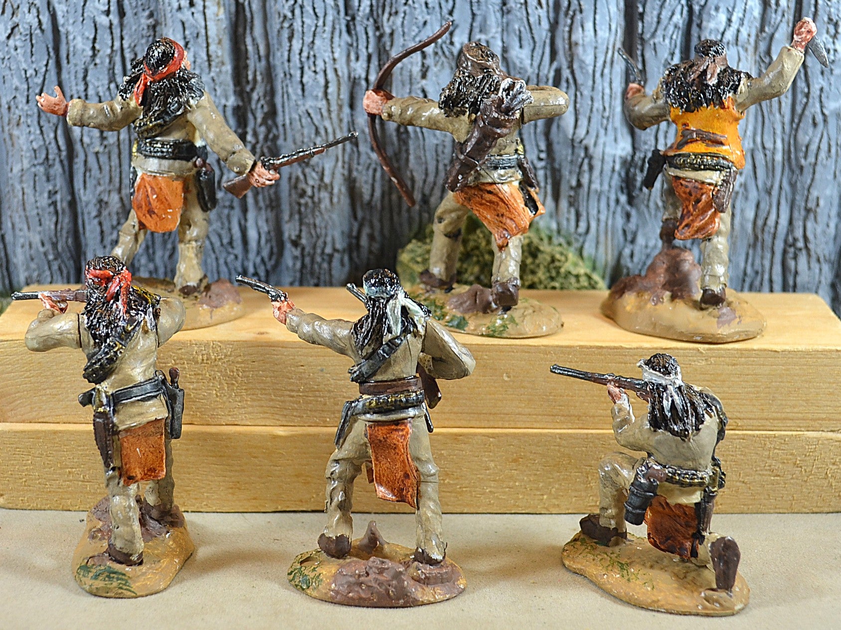 - Outstanding detail with bandoleers, belts with holsters, Apache moccasins, facial features and weapons